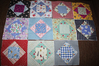 So, when this little quilt fellow here grows up, when the blocks are stitched into rows, and the rows joined to form the top, and sandwiching and quilting occurs, it will be in the general neighborhood of 48 by 60 inches, plus whatever borders I've opted to use. Overall, a lap or a nap quilt. For me. Because by the time I've completed it, I will be tired.